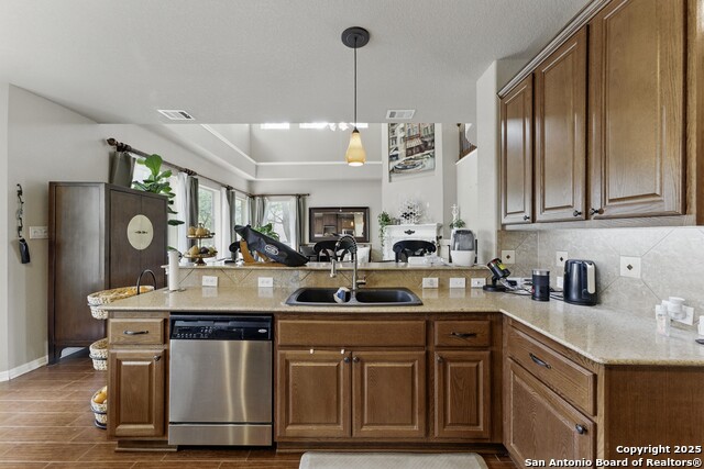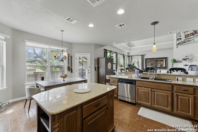 Elegance meets functionality in this spacious and sophisticated home that exudes style and dazzling appeal. This beautifully designed residence welcomes you with an inviting entryway filled with natural light and a seamless open-concept layout that transitions effortlessly between spaces creating a warm and inviting atmosphere throughout. Blending comfort with modern convenience, this home showcases soaring ceilings, recessed lighting, stone corner fireplace, whole-house water softener system and ceiling fans throughout. At the heart of the home, the chef-inspired kitchen makes a stunning statement with granite countertops, a designer tile backsplash, abundant cabinetry with a center island, a walk-in pantry, and both a breakfast bar and multiple dining areas ideal for everything from casual mornings to holiday gatherings. The expansive primary suite offers a peaceful escape with a walk-in shower, separate vanities, and a spacious walk-in closet. Outdoors, the home is equipped with a 3-car garage, back patio for entertaining, full irrigation system, gutters, storage shed and privacy fence. Located in the gated community of the Estates of Lookout Canyon, residents also benefit from exceptional neighborhood amenities, including a community pool, clubhouse, multiple sports parks and walking trails. Enjoy quick access to major roadways, dining, shopping, nearby parks, and recreation enhancing the lifestyle this stunning home offers.